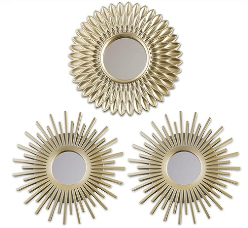 Decorative Champagne Wall Mirrors, Pack of 3 Round Decorative Mirrors, Ideal for Home Room Decoration, Home Decoration, Original Gifts for Women. Wall Decoration