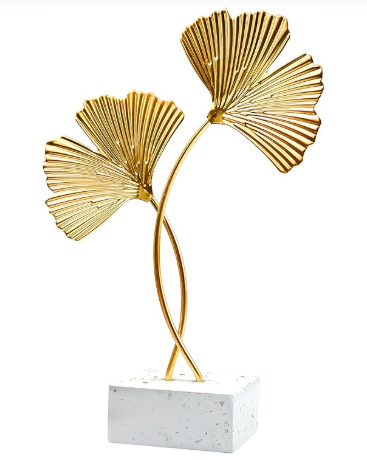 Ginkgo Leaf Ornaments, Modern Creative Desk Sculpture Home Office Bedroom Library Decoration (Gold)
